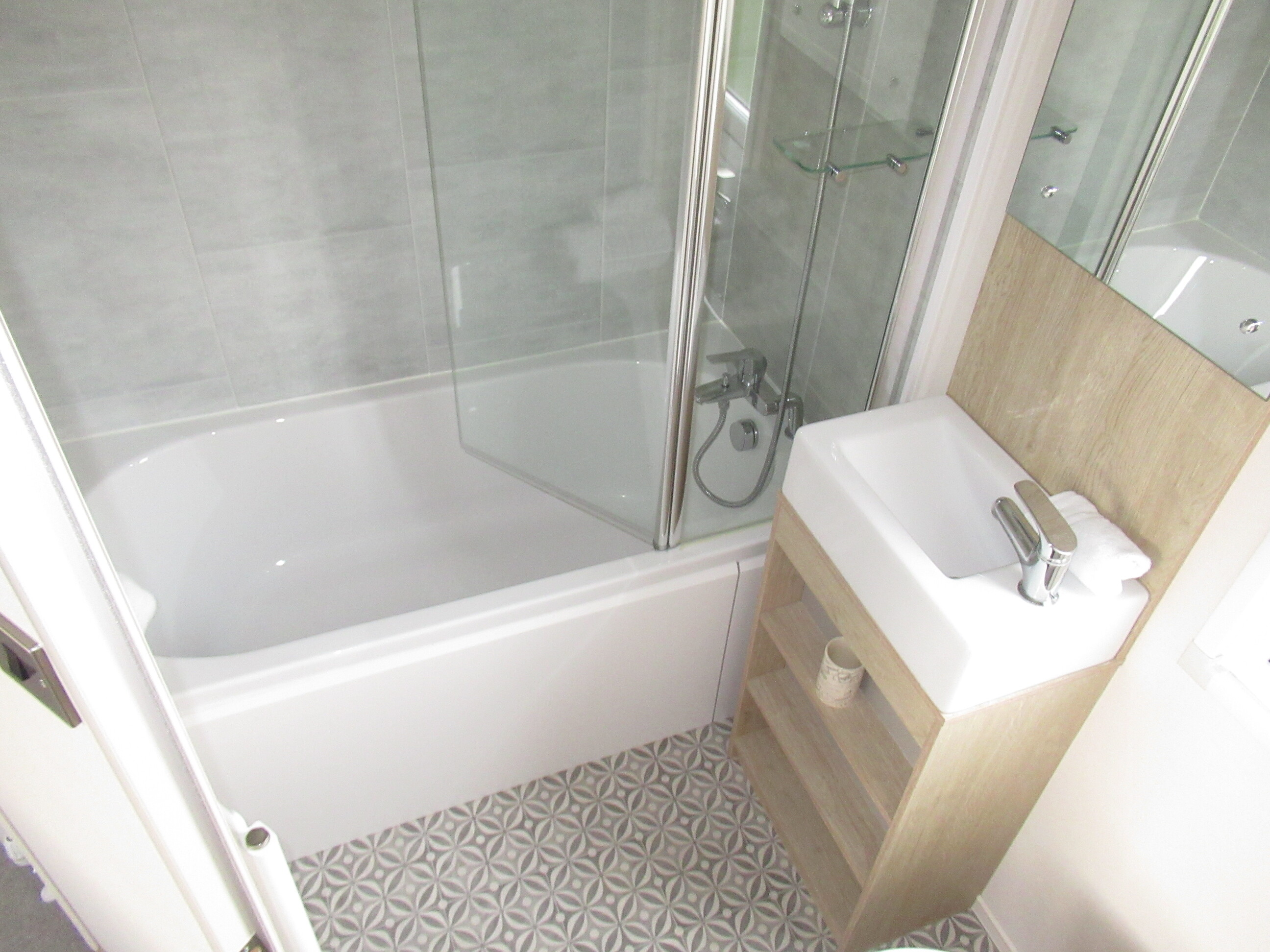 The home offers two beautifully presented bedrooms. The large guest bedroom provides generous storage and comfort, ensuring visitors feel just as relaxed as you do. The family-sized bathroom features modern fittings and a clean, contemporary design.