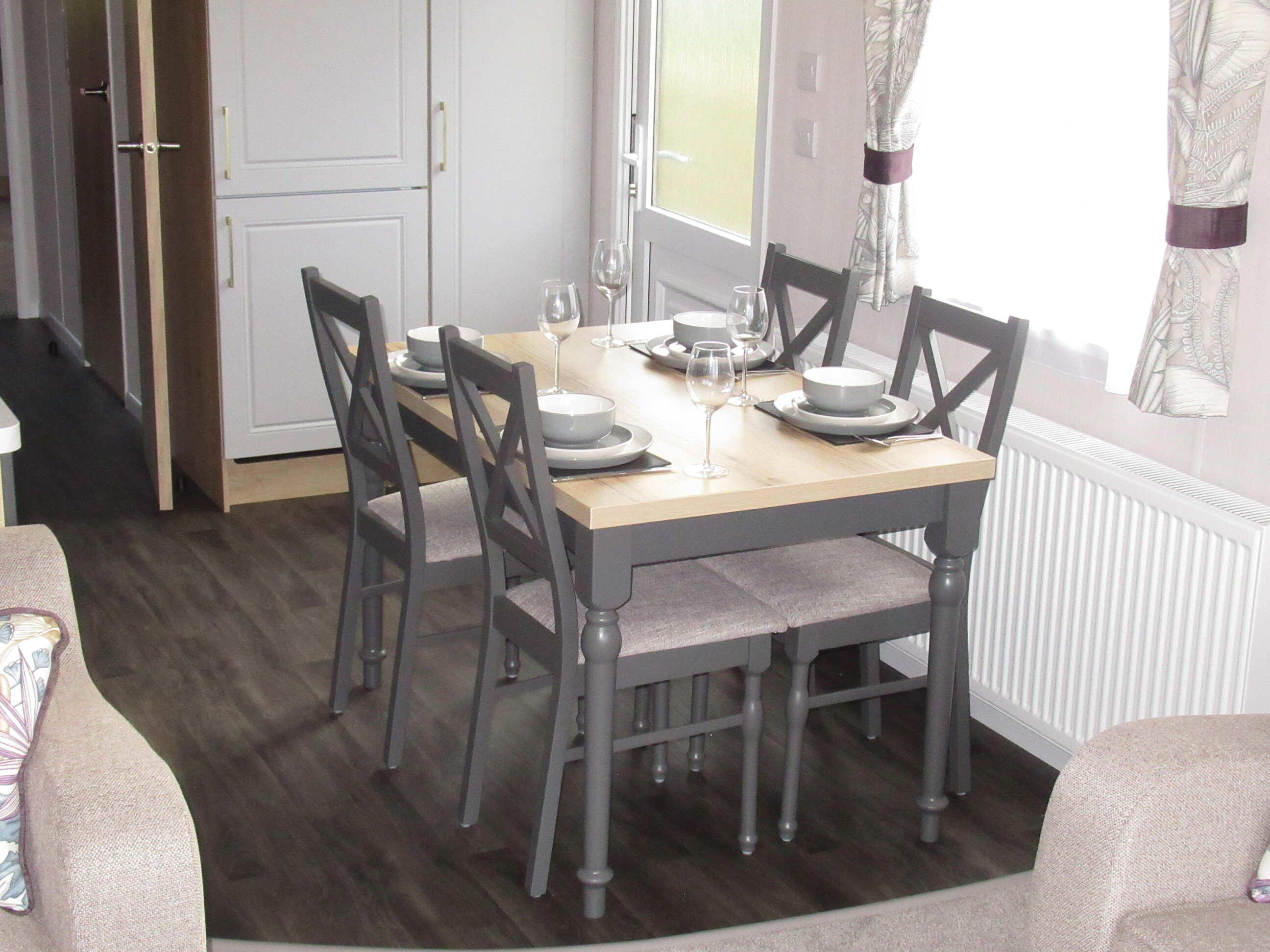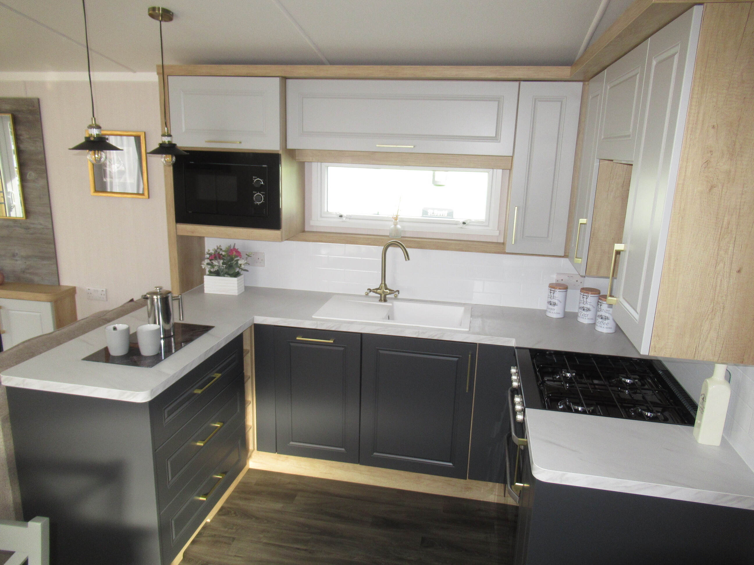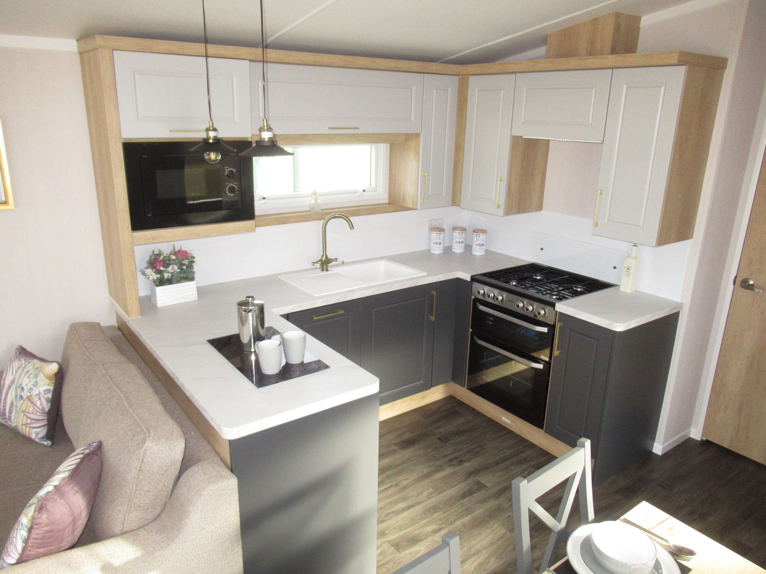 - The spacious and beautifully designed lounge features stylish freestanding furniture, including luxury three- and two-seater sofas, creating a modern and comfortable living space. A feature log-effect electric fire adds warmth and atmosphere, making it perfect for relaxing all year round while enjoying the stunning surrounding views.