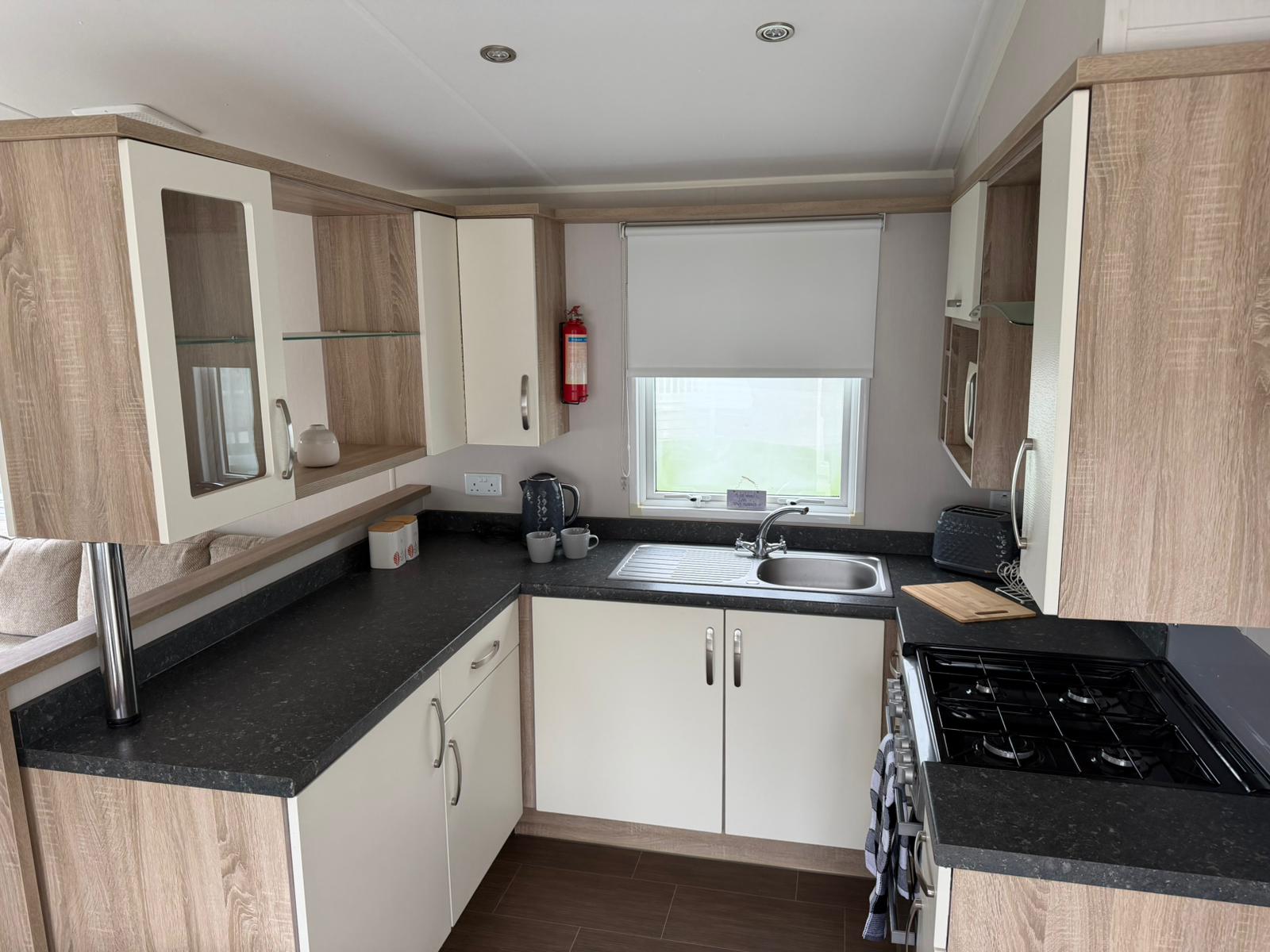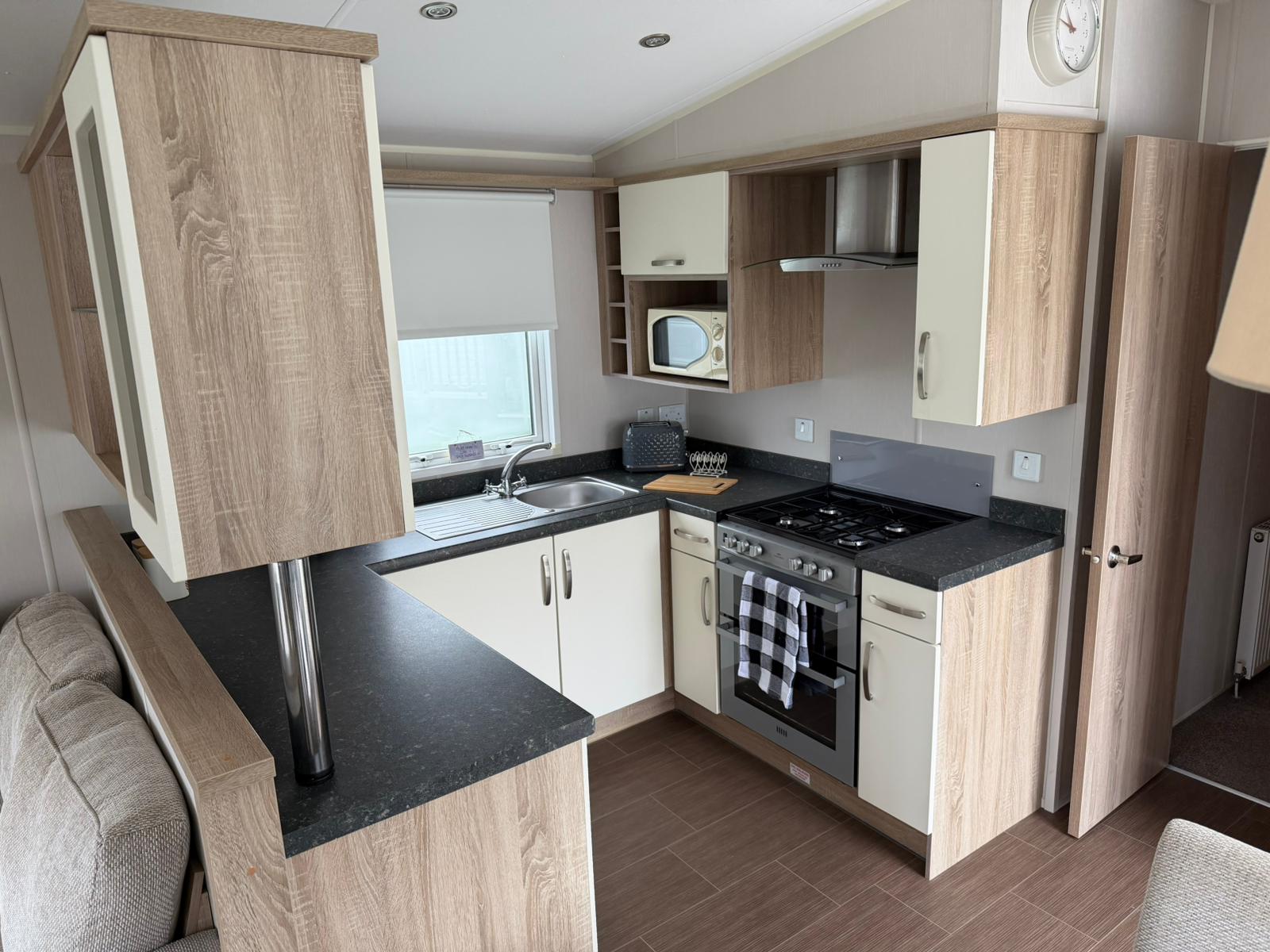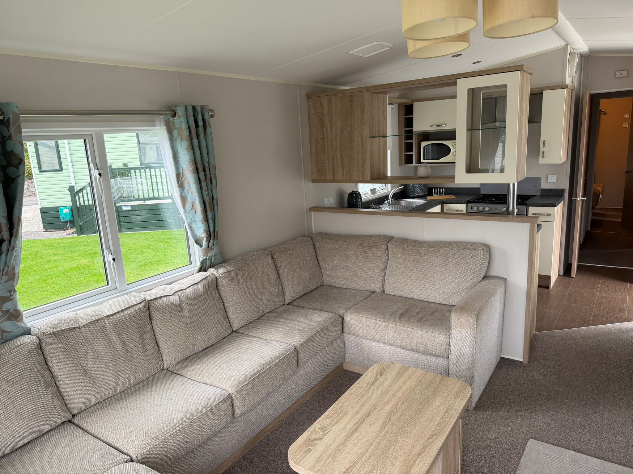It has double glazing and central heating and additional sleeping in the lounge area. The kitchen is fully equipped with a built in fridge freezer and a microwave. The main bedroom is large and spacious as is the lounge diner with plenty of space for a family to enjoy their time together.