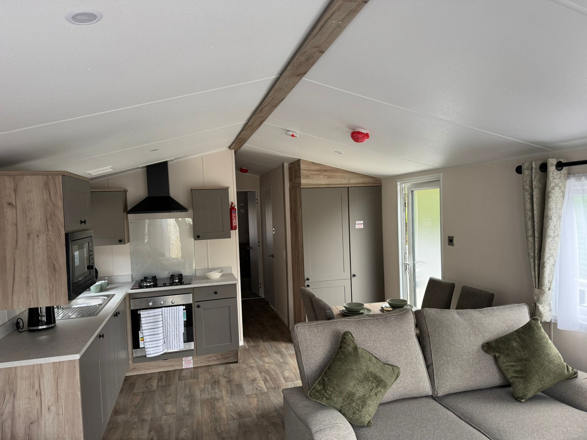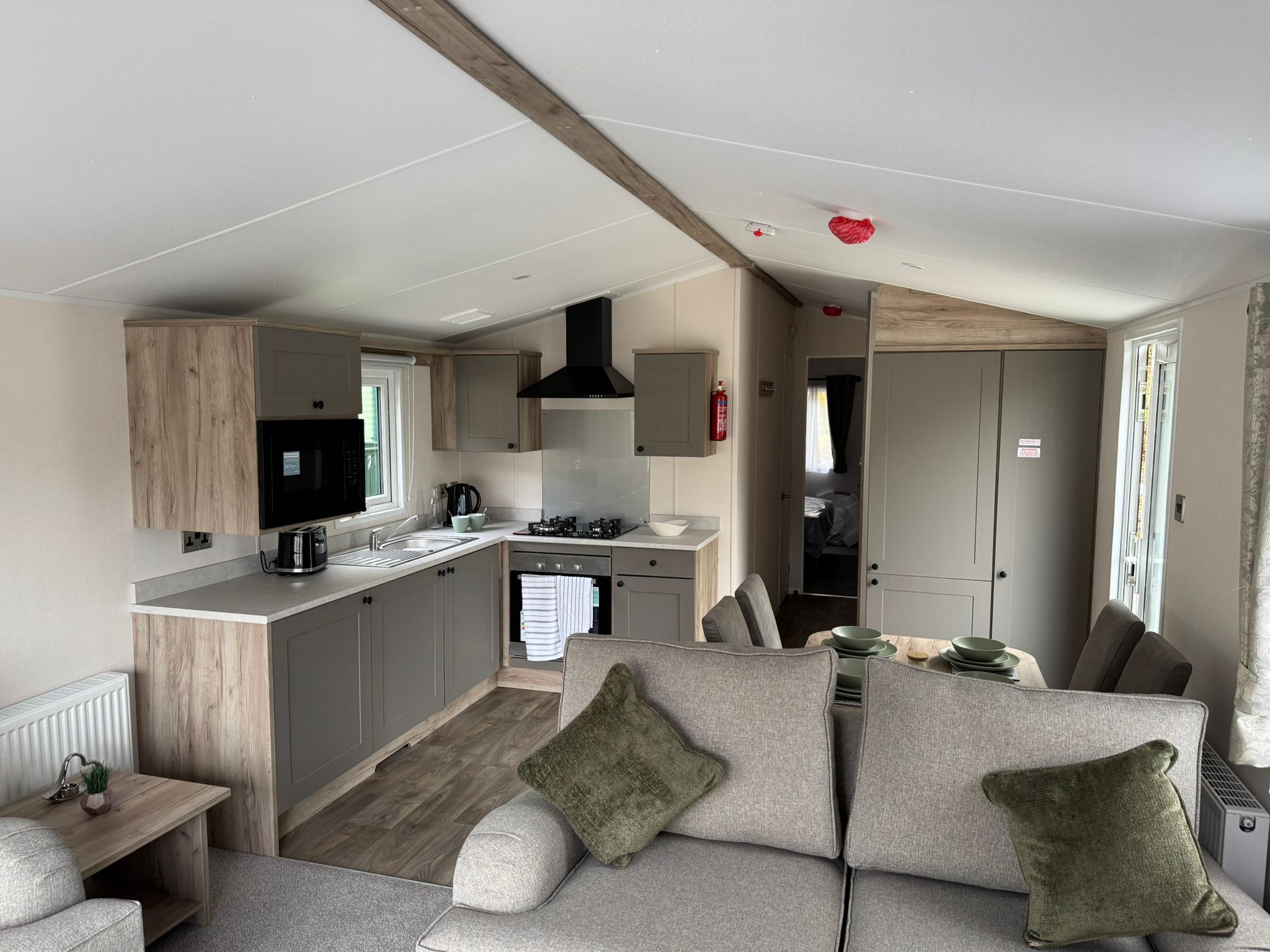 It has double glazing and central heating and additional sleeping in the lounge area. The kitchen is fully equipped with a fridge freezer and a built in microwave. The main bedroom is large and spacious as is the lounge diner with plenty of space for a family to enjoy their time together.